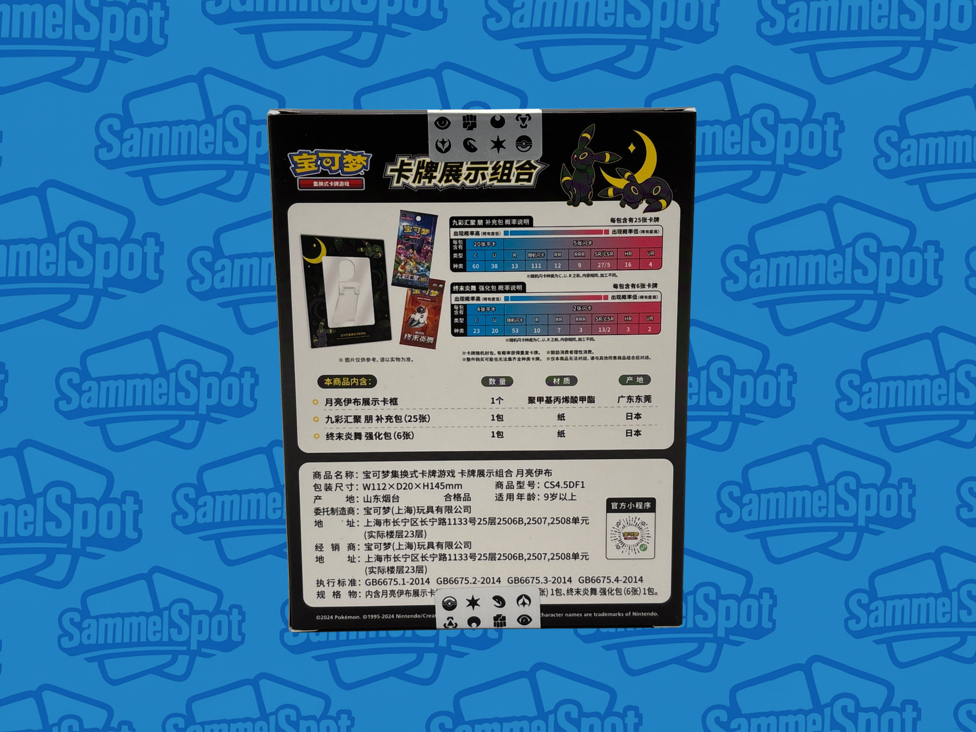 Ein echtes Highlight für Sammler! Die exklusive Nachtara (Umbreon) Display Frame Box in chinesischer Edition kombiniert eine spektakuläre Promokarte mit stilvollem Präsentationsrahmen und zusätzlichen Boosterpacks. Perfekt für alle Fans von Nachtara und hochwertigen Sammlerprodukten.